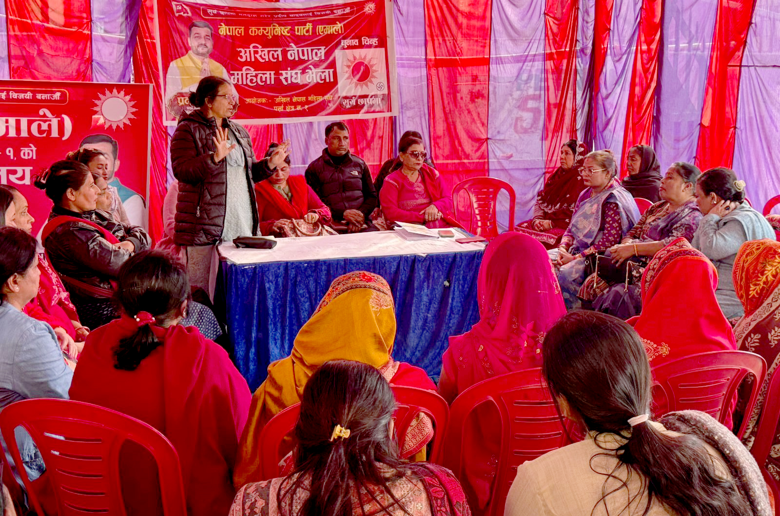 वीरगंज (पर्सा), २६ माघ । वीरगंजमा सोमबार अखिल नेपाल महिला संघ पर्साको भेला सम्पन्न भएको छ । उक्त कार्यक्रम पर्सा क्षेत्र नं. १ बाट नेकपा एमालेका प्रतिनिधिसभा सदस्य उम्मेदवार प्रदीप यादवको समर्थनमा उनलाई विजयी बनाउने उद्देश्यसहित आयोजना गरिएको हो ।