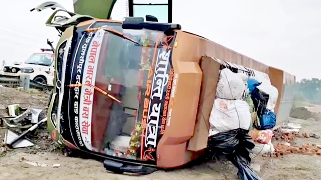 वीरगंज (पर्सा), २६ चैत । भारतको हरिद्वार बाट नेपालतर्फ गइरहेको ‘नेपाल–भारत मैत्री सेवा’ बस बुधबार बिहान करिब २ बजे गदरपुर नजिक दुर्घटनामा परेको छ । गोपाल नगर टी–जंक्सन आसपास बस अनियन्त्रित भई सडकबाट तल खेतमा खस्दा पल्टिएको हो । युके १००५३ नम्बरको उक्त बसमा चालकसहित ६५ जना सवार थिए, जसमा अधिकांश यात्रु नेपालको दाङ जिल्लाका रहेको प्रारम्भिक विवरणले देखाएको छ ।