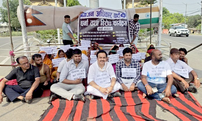 वीरगंज (पर्सा), ६ वैशाख । नेपाल भारत सीमा क्षेत्र शंकराचार्य गेट स्थित जनअधिकार पार्टीले धर्ना दिएको छ । भारतबाट १०० रुपैयाँ बढी मूल्यको सामान ल्याउँदा भन्सार कर तिर्नुपर्ने नियमको विरोधमा जनअधिकार पार्टीका अध्यक्ष डा. शरदसिंह यादवको अगुवाइमा उक्त पार्टीका नेता कार्यकर्ताले आइतबार वीरगंज नाकास्थित शंकराचार्य गेटस्थित सडकमै एक घण्टा धर्ना दिएका हुन् ।
