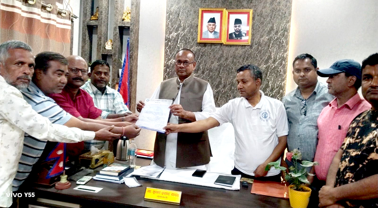 जनकपुरधाम (धनुषा), ९ वैशाख । नेपाल पत्रकार महासंघको केन्द्रीय समितिको परिपत्रअनुसार मधेश प्रदेश समितिले सरकारी विज्ञापन नीतिविरुद्ध मुख्यमन्त्री कृष्ण प्रसाद यादवलाई ज्ञापनपत्र बुझाएको छ । प्रदेश सचिव हदिश खुद्दारको नेतृत्वमा गएको टोलीले मुख्यमन्त्री कार्यालय पुगेर उक्त ज्ञापनपत्र हस्तान्तरण गरेको हो ।